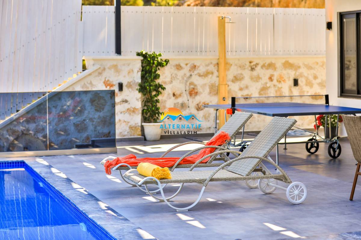 Villa Akdeniz-2, 2021 yılında tamamlanmış olup Kalkan mahallesinin İslamlar mevkiinde doğa ile iç içe konum almaktadır. Villamız panoramik doğa manzarasına sahiptir. Müstakil, özel yüzme havuzunun etrafı yabancı gözlerden uzak, muhafazakar bir villadır. Kalkan merkeze 10 km mesafededir. Villa Akdeniz-2, 2 yatak odasına sahiptir ve 4 kişinin konaklayabileceği kapasiteye göre modern ve şık dekore edilmiştir. Her yatak odasında jakuzi bulunmaktadır. Balayı çiftlerimiz ve çekirdek ailelerimiz için lüks bir tatil fırsatı oluşturmaktadır. Villa Akdeniz-2, siz değerli misafirlerimize doğa içerisinde huzur dolu bir tatil için kapılarını aralamaktadır.
