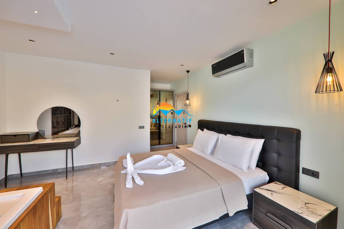 2. Yatak Odası : 1 adet çift kişilik yatak, klima, komodin, makyaj masası, elbise dolabı ve banyo tuvalet bulunmaktadır.