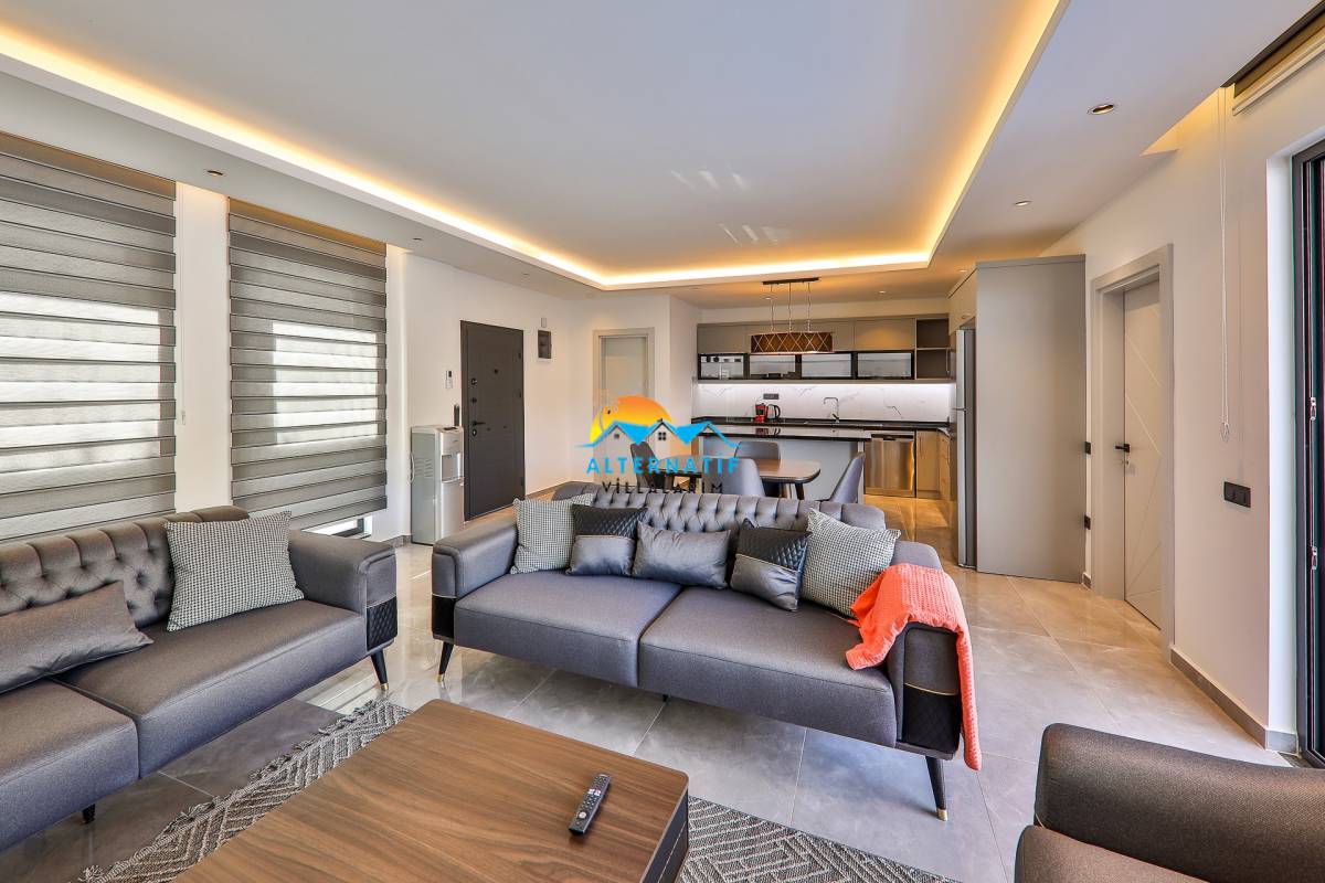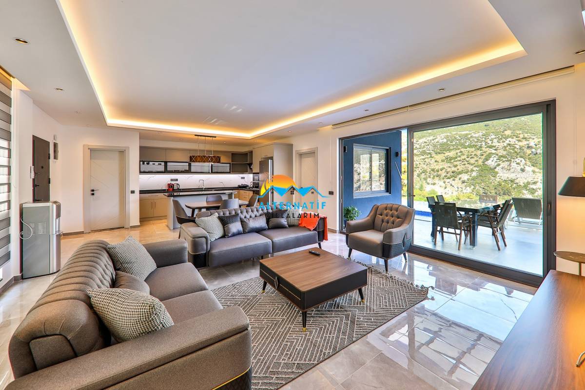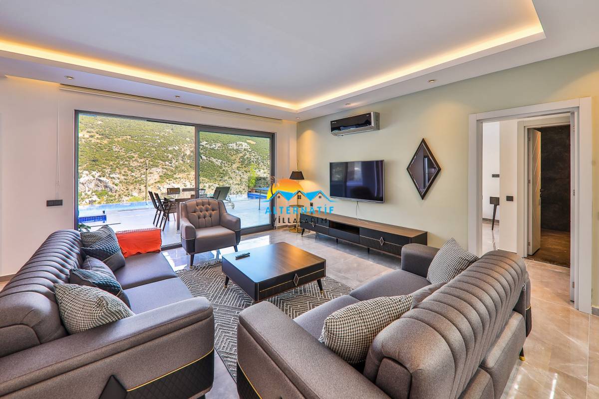 Villamızın salonunda ; oturma grubu, klima, sehpa, TV, uydu alıcı ve kablosuz modem yer almaktadır.