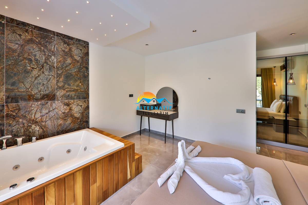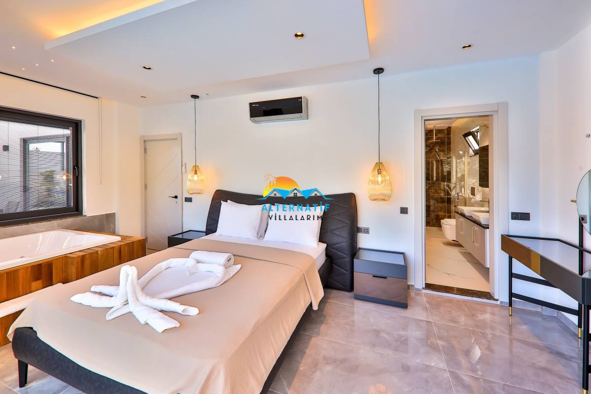 1. Yatak Odası : 1 adet çift kişilik yatak, klima, komodin, makyaj masası, elbise dolabı, jakuzi ve banyo tuvalet bulunmaktadır.